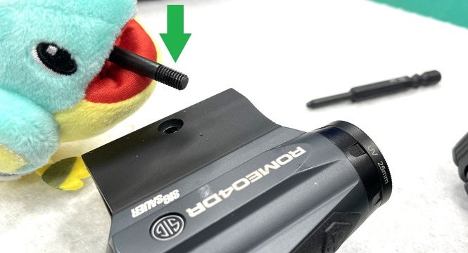 「電動ガンSIG SAUERにつけているドットサイトのネジがつぶれてしまいました。 ネジ滑り止め液など使いましたがダメでした。」
